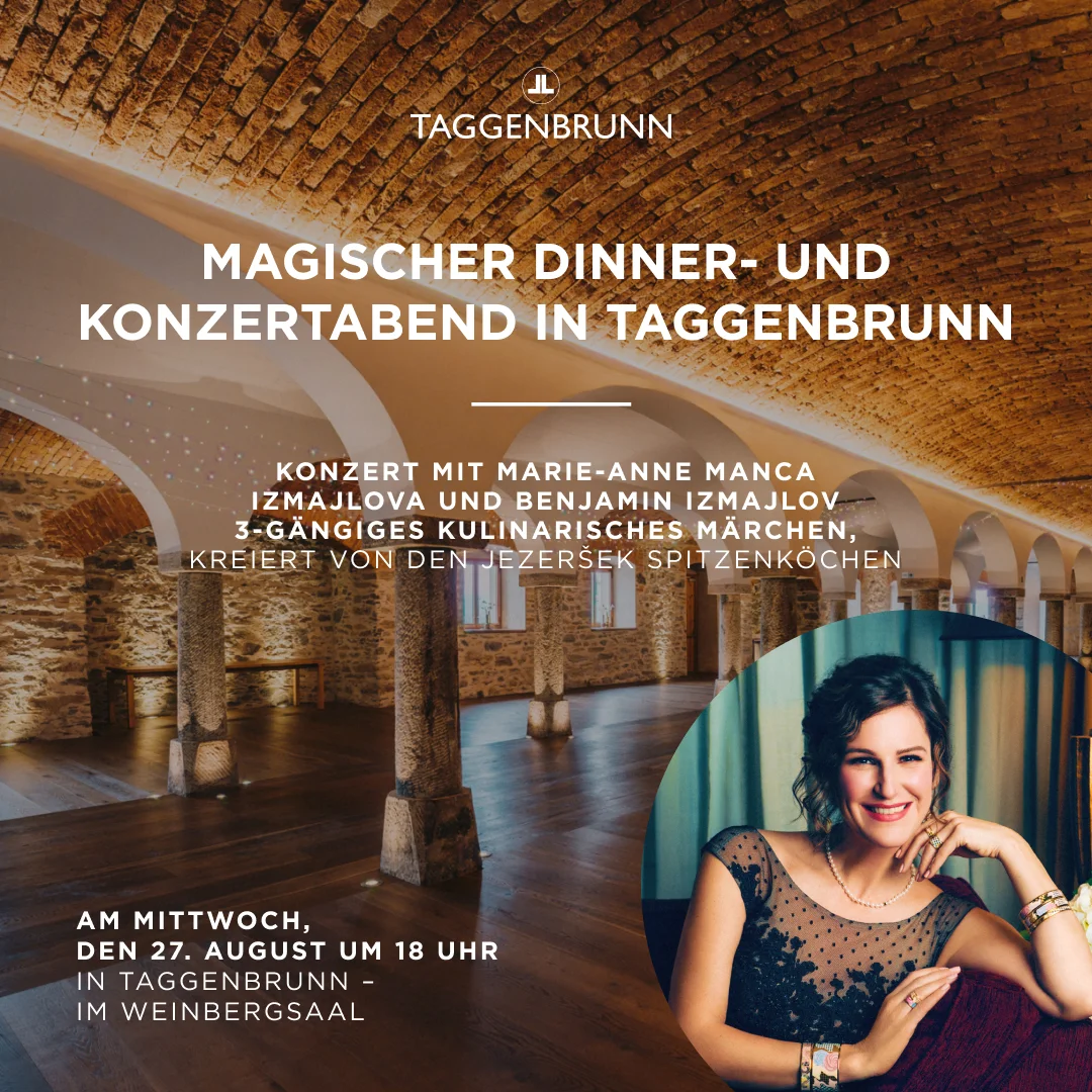After a successful and quickly sold-out evening that combined stunning music and top-notch cuisine, we are announcing another magical evening at Taggenbrunn.